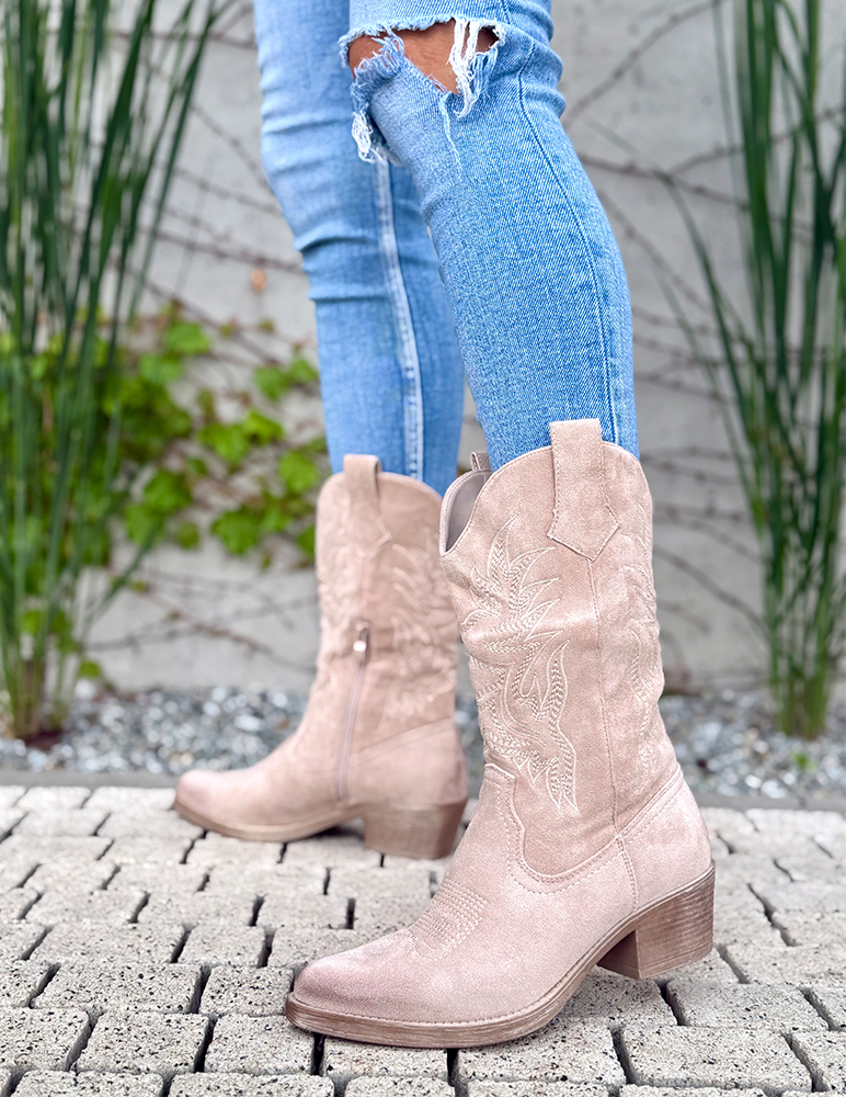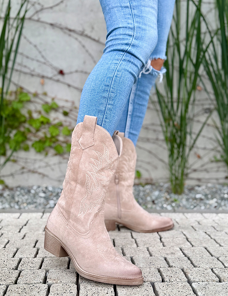 Doprajte si odvážny kúsok, ktorý v sebe spája tradičný westernový štýl s moderným štýlom. Béžové semišové kovbojské čižmy Chilia sú ideálnou voľbou pre tých, ktorí sa neboja vyniknúť. Zapínanie je na zips z vnútornej strany.