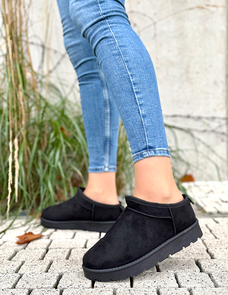 Čierne snehule Hadley sú ideálnou voľbou pre chladné zimné dni, keď sa spája pohodlie s praktickosťou. Vyrobené sú z mäkkého semišového materiálu, ktorý pôsobí elegantne a zároveň chráni pred chladom. Vnútro je vystlané hustou, hrejivou kožušinkou, ktorá zaručuje maximálne teplo aj počas mrazov.Majú jednoduchý, nízky strih, ktorý umožňuje ľahké obúvanie a pohodlné nosenie. Hrubšia gumová podrážka s protišmykovým dezénom poskytuje stabilitu na klzkom povrchu a zároveň tlmí nárazy pri chôdzi.Tieto univerzálne zimné topánky sa skvele hodia na bežné nosenie, zimné prechádzky aj relaxačné dni doma. Ich neutrálny odtieň sa ľahko kombinuje s rôznymi outfitmi – od teplákov až po džínsy či legíny. Topánky sú zateplené.