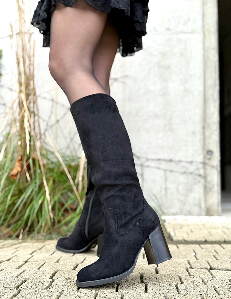 Semišové čižmy na opätku sú vyrobené z mäkkého, jemného ekosemišu, ktorý pôsobí luxusne a príjemne na dotyk. Majú hrubší, ale stabilný opätok, ktorý dodáva postave výšku a elegantný postoj. Ich dizajn je čistý a nadčasový, doplnený bočným zipsom. Celkový dojem je štýlový, ženský a elegantný, ideálny na jesenné a zimné obdobie – či už k šatám, sukniam alebo úzkym nohaviciam. Čižmy sú zateplené jemným plyšom.