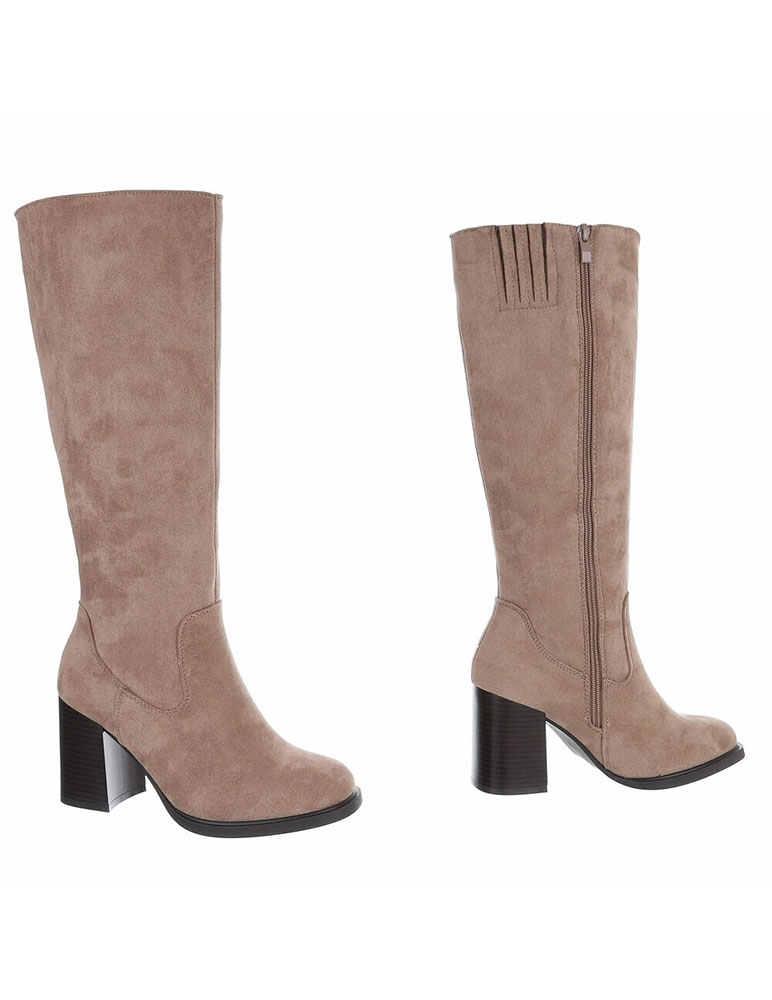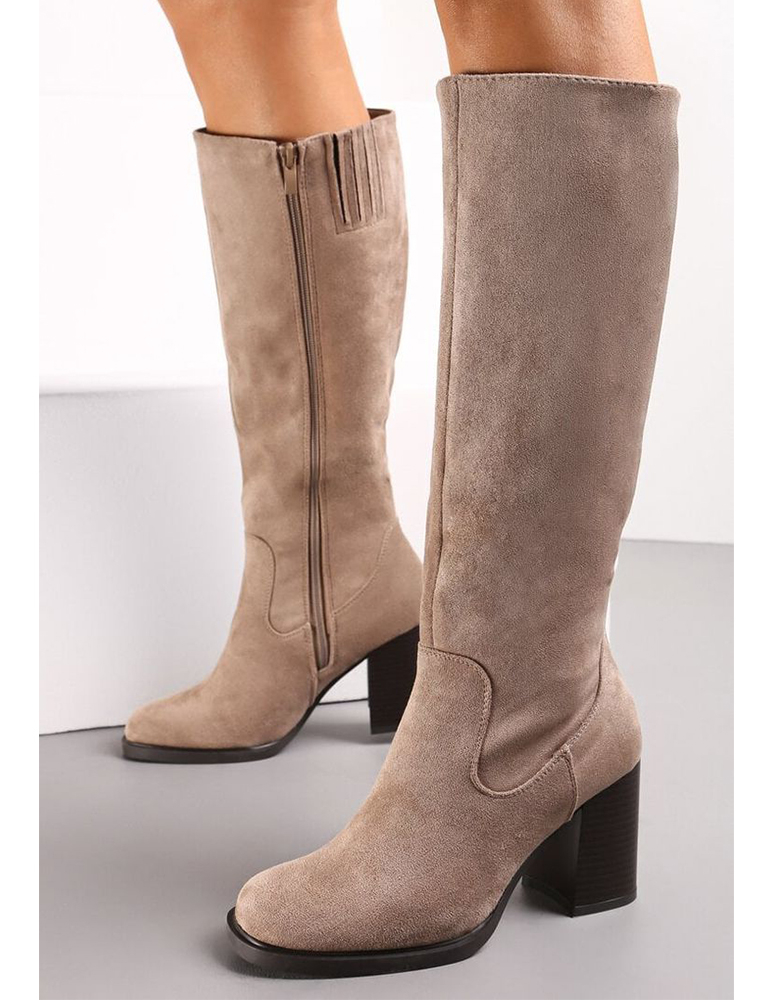 Semišové čižmy na opätku sú vyrobené z mäkkého, jemného ekosemišu, ktorý pôsobí luxusne a príjemne na dotyk. Majú hrubší, ale stabilný opätok, ktorý dodáva postave výšku a elegantný postoj. Ich dizajn je čistý a nadčasový, doplnený bočným zipsom. Celkový dojem je štýlový, ženský a elegantný, ideálny na jesenné a zimné obdobie – či už k šatám, sukniam alebo úzkym nohaviciam. Čižmy sú zateplené jemným plyšom.