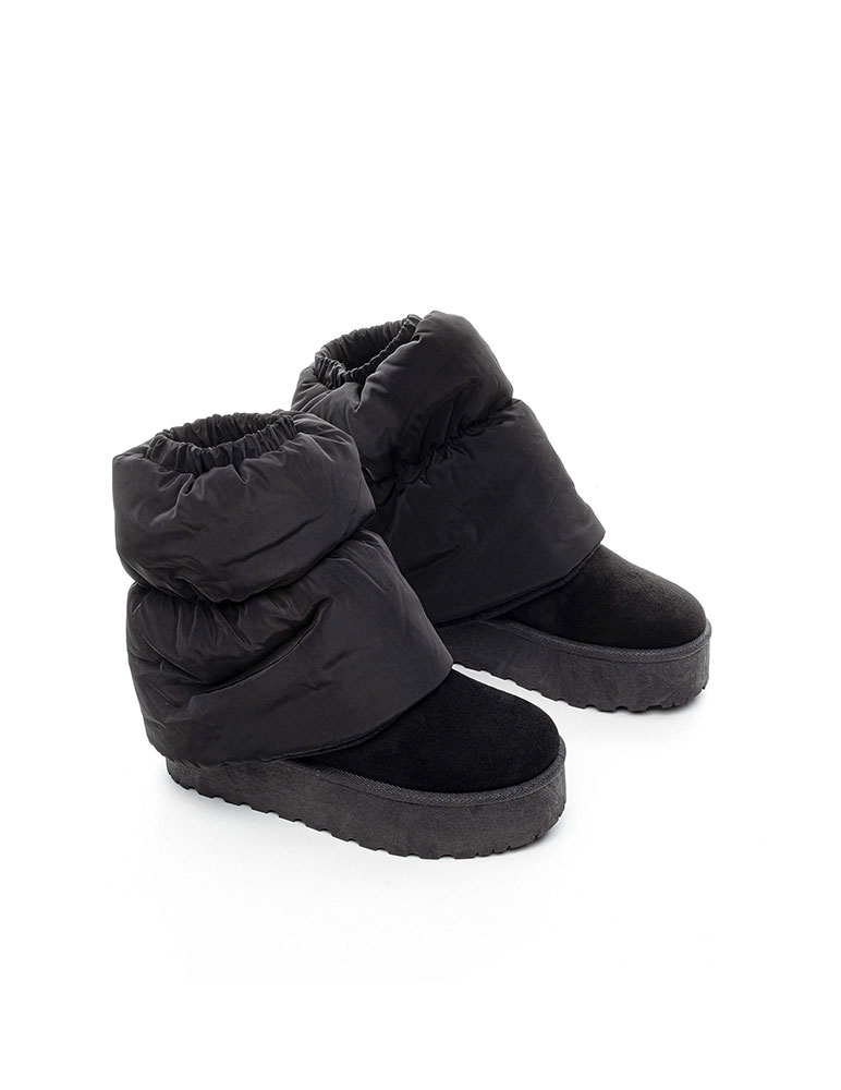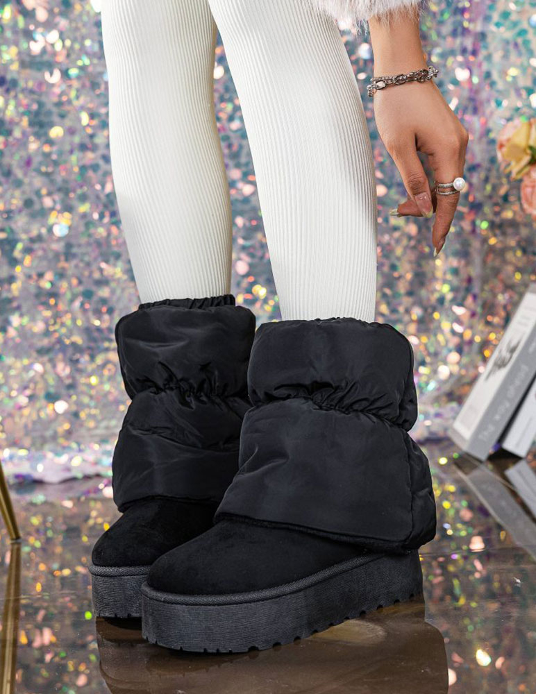 Tieto snehule sú moderné zimné topánky s výrazným, nadýchaným dizajnom. Majú vysoký zvršok z mäkkej, vatovanej látky, ktorý pôsobí nadýchane a výborne udržiava teplo. Ich elastické sťahovanie okolo členka aj v hornej časti pomáha lepšie udržať teplo a zabraňuje vnikaniu snehu. Majú hrubú platformovú podrážku so vzorovaním, ktorá zabezpečuje stabilitu a izoláciu od studeného povrchu. Celkový vzhľad je trendový, pohodlný a teplý, ideálny na zimné počasie, sneženie alebo chladné dni. Snehule sú hrubo zateplené. Nepremokavé štucne sa dajú dať dole zo snehule. Sú samostatnou súčasťou.