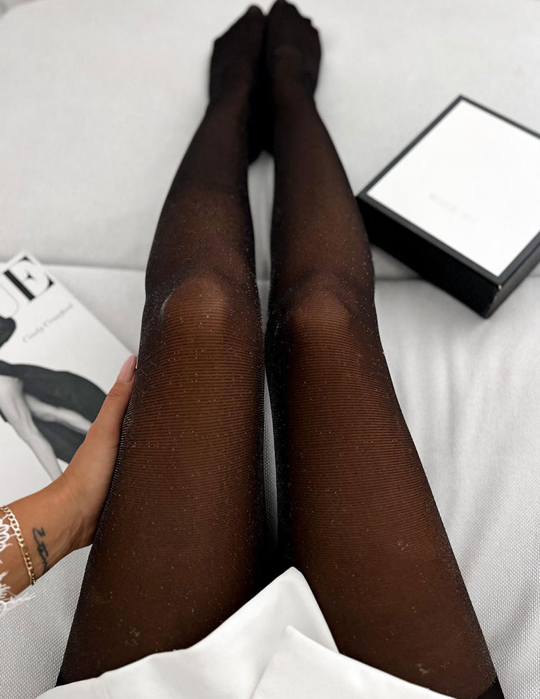 Čierne pančušky s lurexom Anastasia sú pančušky, ktoré majú 60 DENov. Sú vkusné a zároveň pohodlné. Jednoducho ich skombinujete s rôznymi outfitmi. Sú pretkavané striebornou niťou. Sú označené veľkosťami TG3 a TG4.
