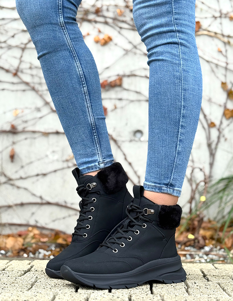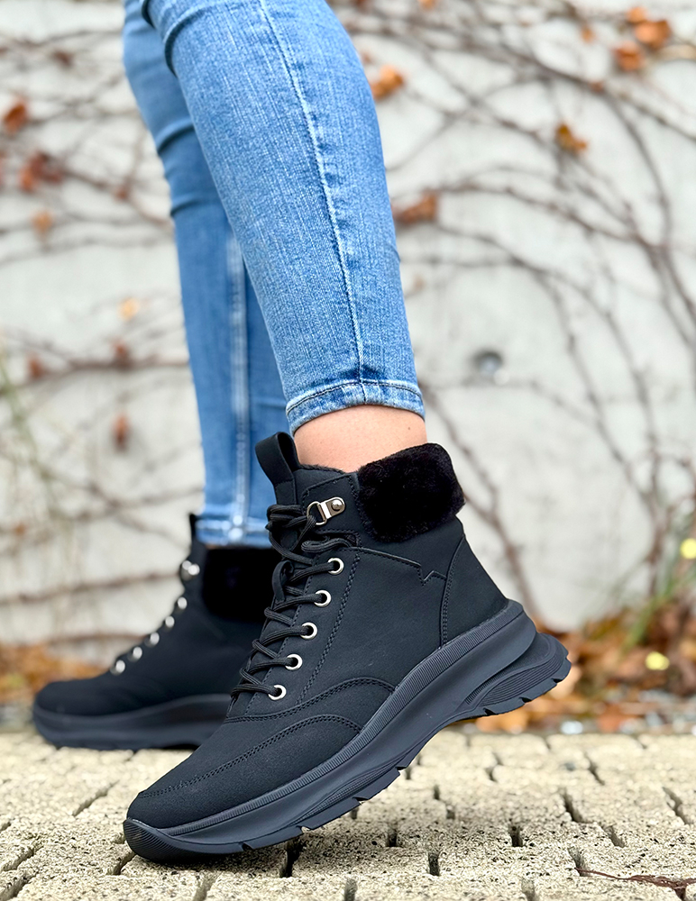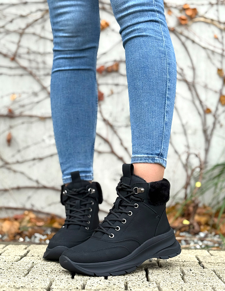 Perfektné topánky na jeseň a zimu, ktoré udržia vaše nohy v pohodlí a teple. Topánky sú na vyššej podrážke a zaväzujú sa šnurovaním. Skvelo doplnia vaše ležérne outfity. Topánky sú zateplené jemným plyšom.