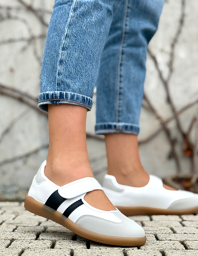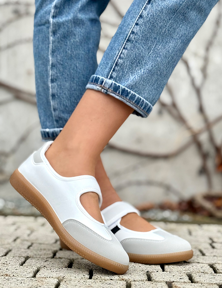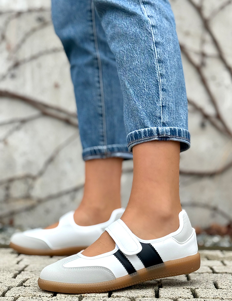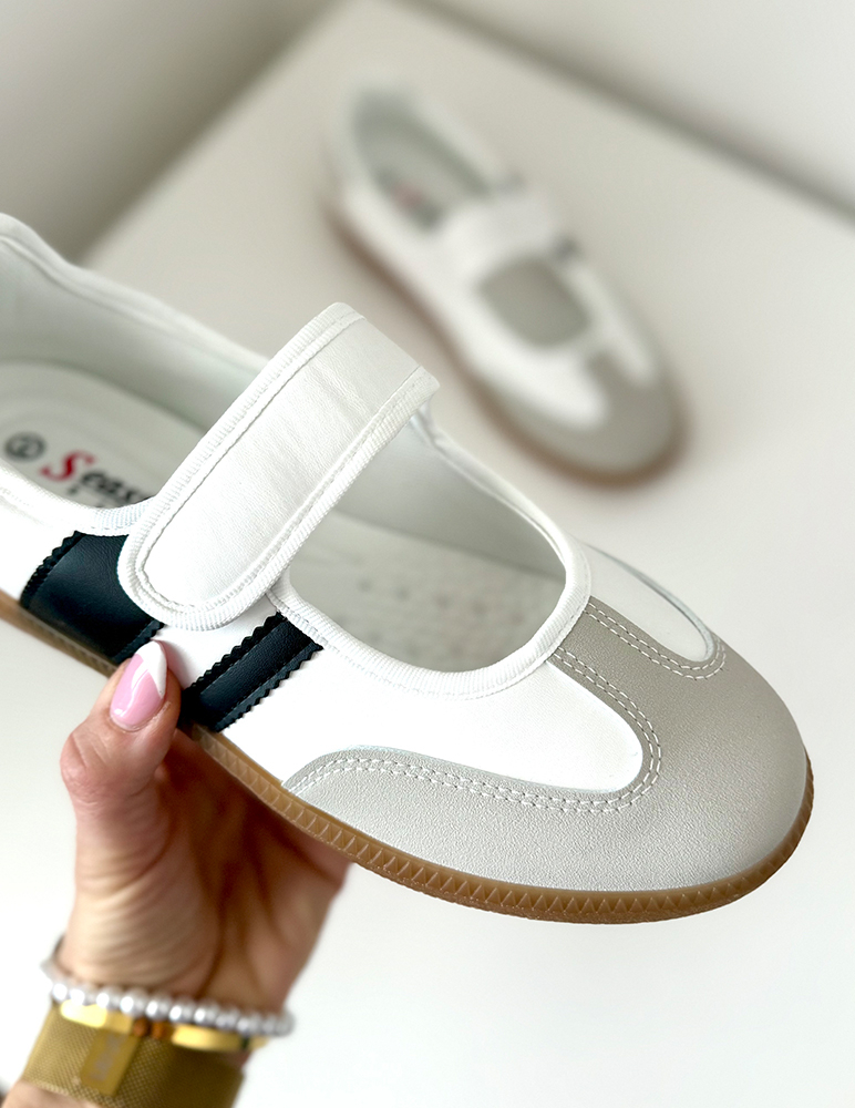 Dámske poltopánky Alaina sú v športovo-elegantnom štýle. Sú vyhotovené v kombinácii dvoch farieb, ktoré zvýrazňujú štýl poltopánok. Majú zaoblenú špičku a nízku, pohodlnú podrážku v prírodnom hnedom odtieni, ktorá zabezpečuje stabilitu pri chôdzi. Zapínanie je riešené praktickým suchým zipsom, vďaka čomu sa ľahko obúvajú a dobre prispôsobia nohe. Topánky sú vhodné na bežné nosenie, voľný čas alebo dlhšie prechádzky, kde je dôležité pohodlie aj moderný vzhľad.