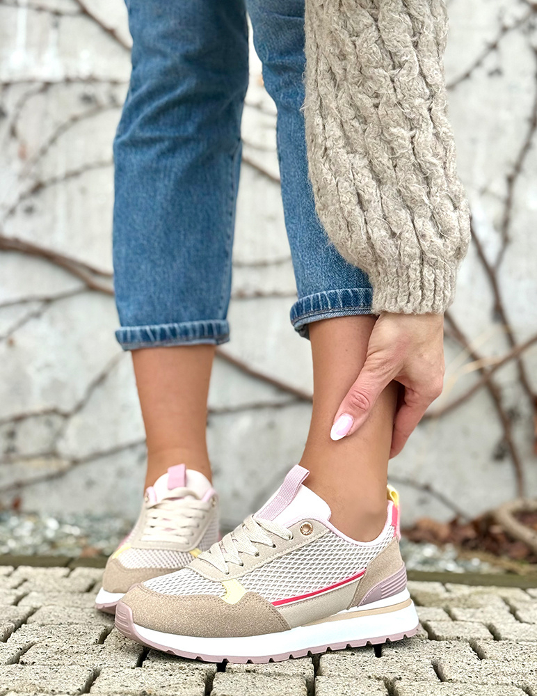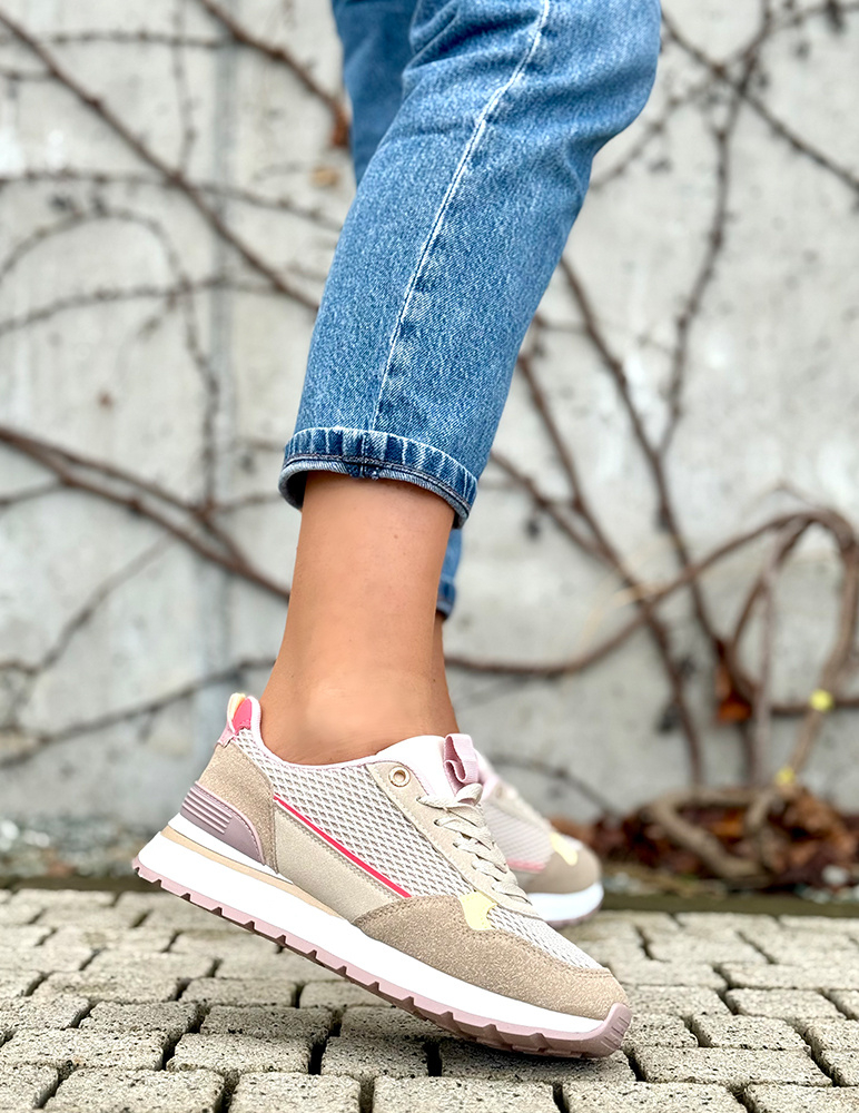 Tieto tenisky majú športový charakter s moderným a výrazným vzhľadom. Vyznačujú sa výraznejšou podrážkou s hlbokým dezénom, ktorá zabezpečuje dobrú trakciu a zároveň podčiarkuje ich dynamický dizajn. Zvršok je mäkký, pohodlný a odolný, vďaka čomu sa dobre prispôsobí chodidlu. Celkovo ide o komfortné športovo-mestské tenisky, vhodné na každodenné nosenie aj nenáročné aktivity.
