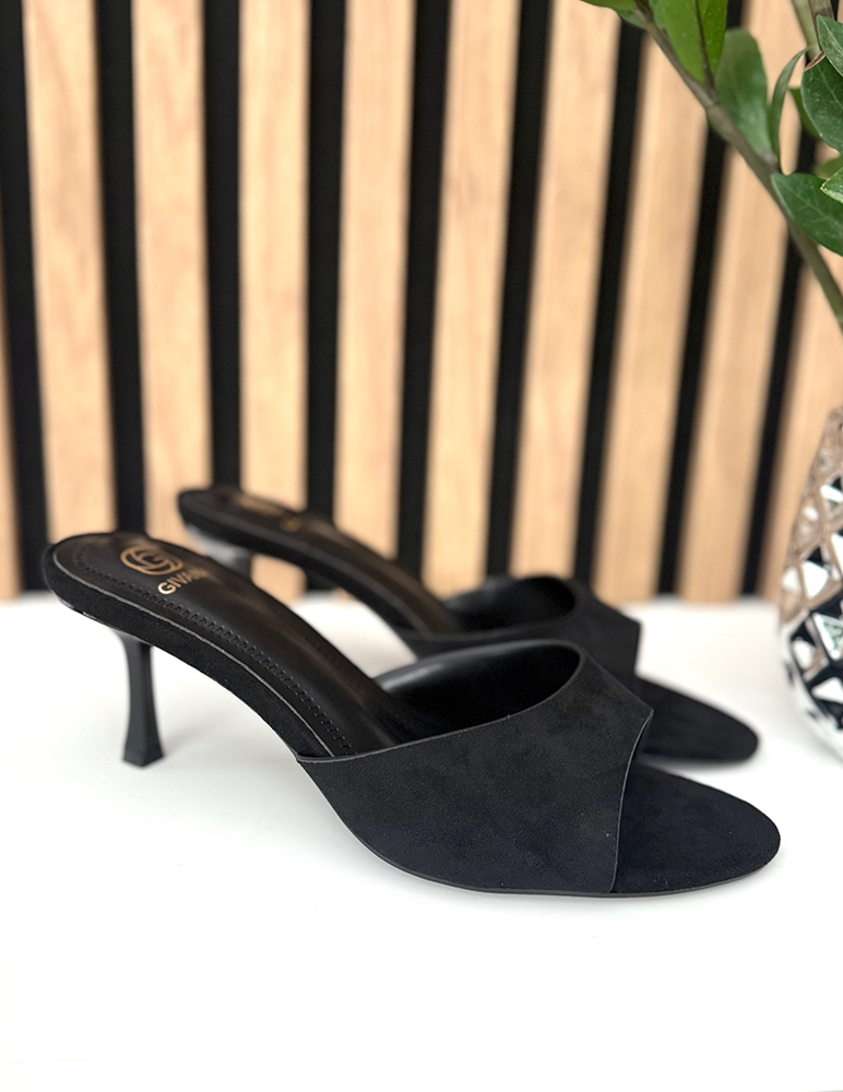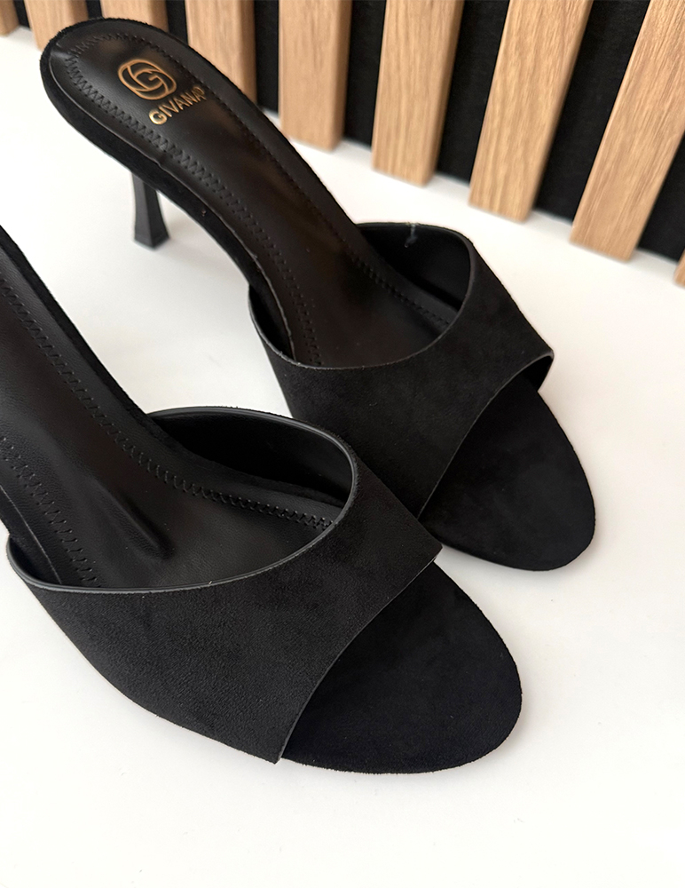 Otvorené dámske čierne šľapky Fay na podpätku sú elegantnou a štýlovou obuvou, ideálnou na teplejšie dni. Majú otvorenú špičku a otvorenú pätu, vďaka čomu pôsobia ľahko a vzdušne. Stabilný podpätok dodáva postave ženský vzhľad a zároveň zabezpečuje pohodlie pri chôdzi. Zvršok je tvorený jemným širším remienkom, ktorý pekne obopína chodidlo.
