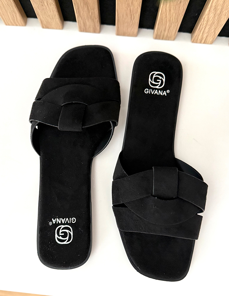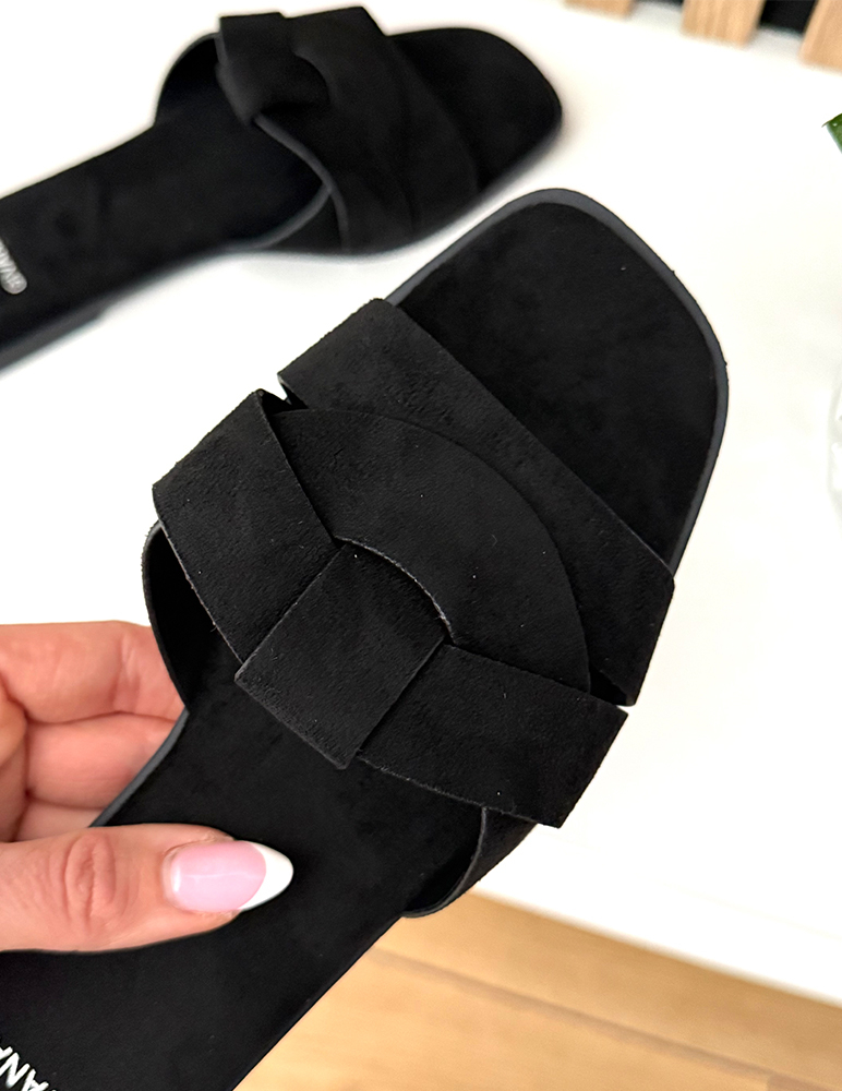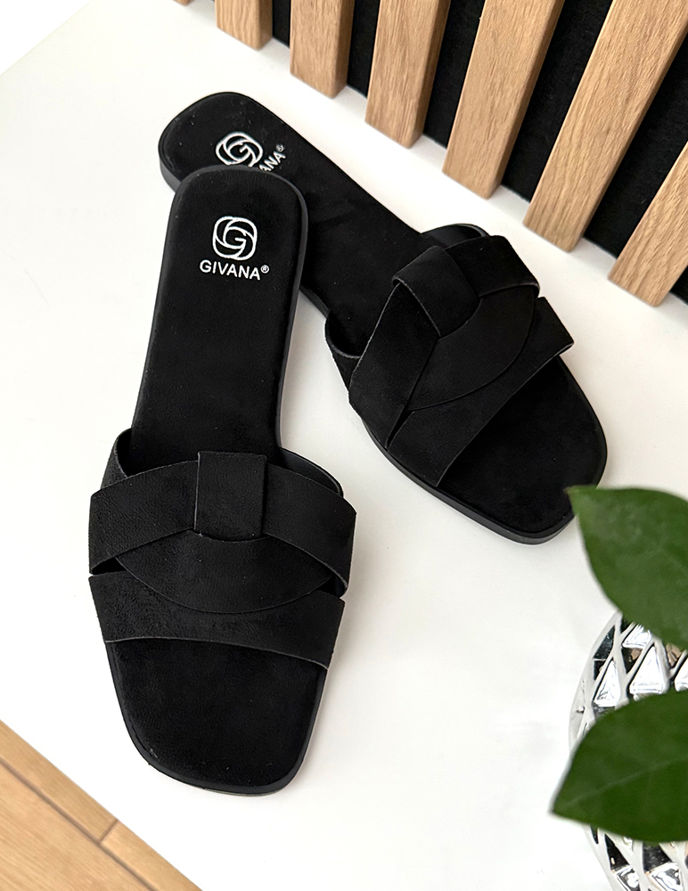 Dámske šľapky Katelyn sú v čiernom odtieni. Majú otvorený strih s dvoma prekríženými remienkami, ktoré zabezpečujú pohodlné držanie chodidla. Zvršok pôsobí mäkko a príjemne na dotyk, čo prispieva ku komfortu pri nosení. Nízka plochá podrážka je ľahká a praktická, vhodná na každodenné používanie.