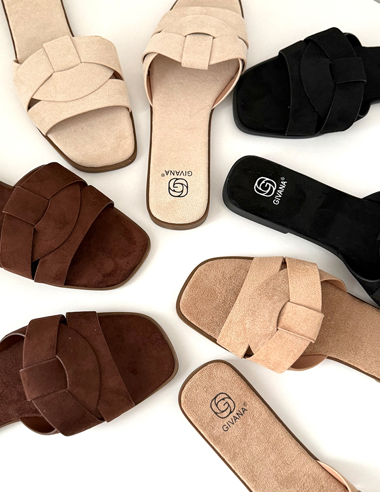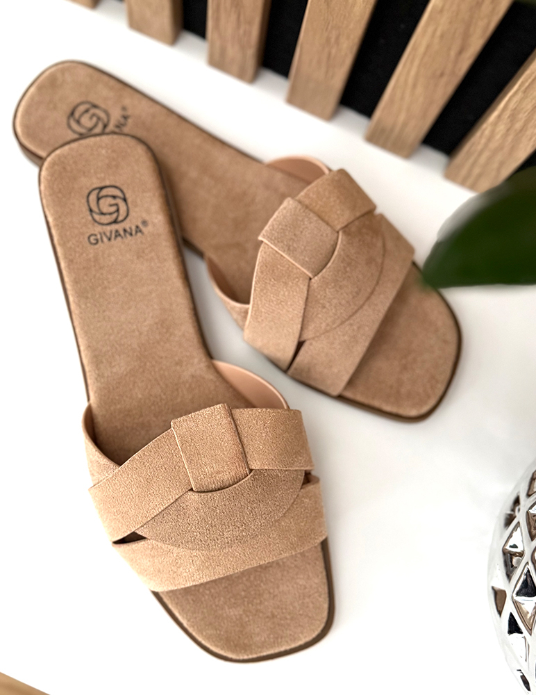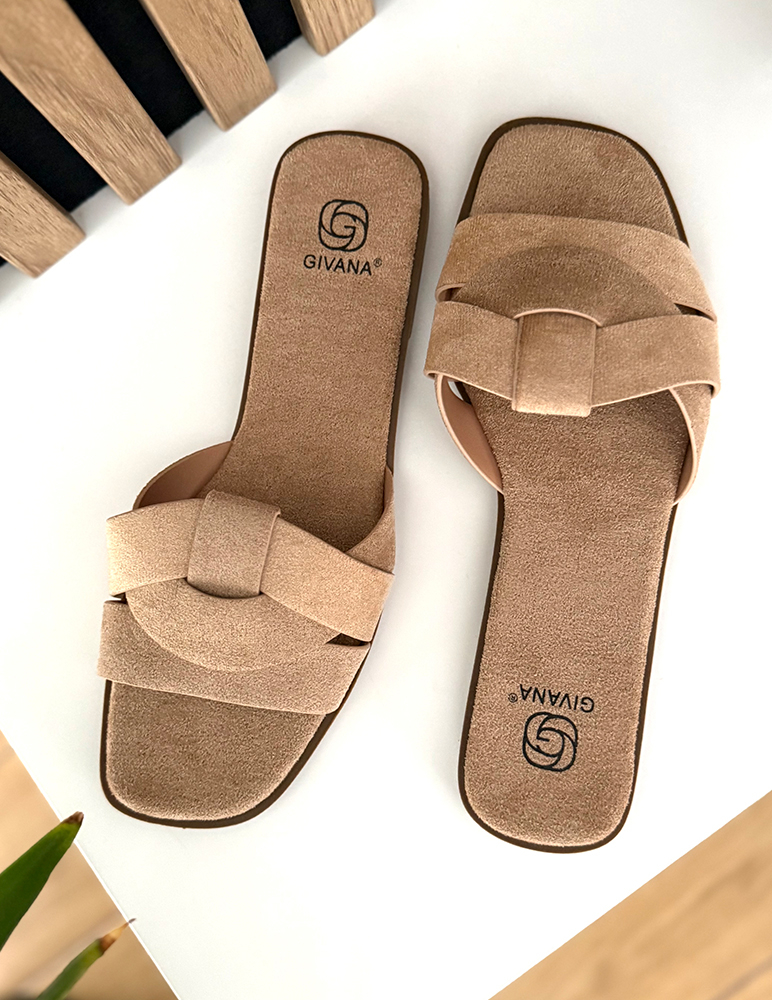 Dámske šľapky Katelyn sú v khaki odtieni. Majú otvorený strih s dvoma prekríženými remienkami, ktoré zabezpečujú pohodlné držanie chodidla. Zvršok pôsobí mäkko a príjemne na dotyk, čo prispieva ku komfortu pri nosení. Nízka plochá podrážka je ľahká a praktická, vhodná na každodenné používanie.