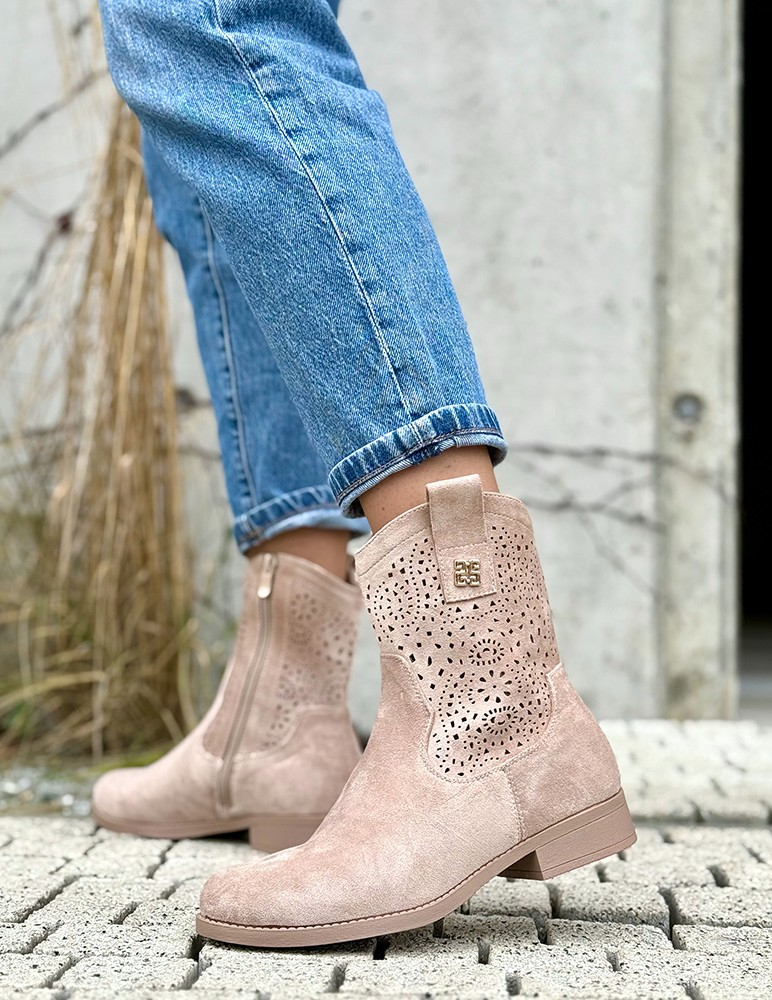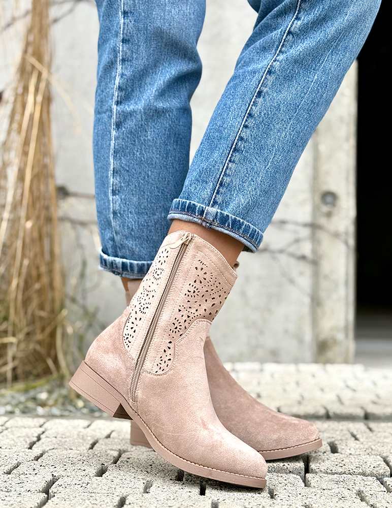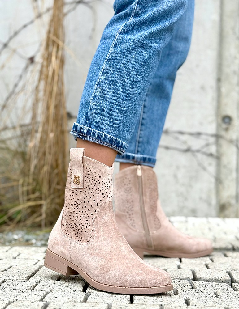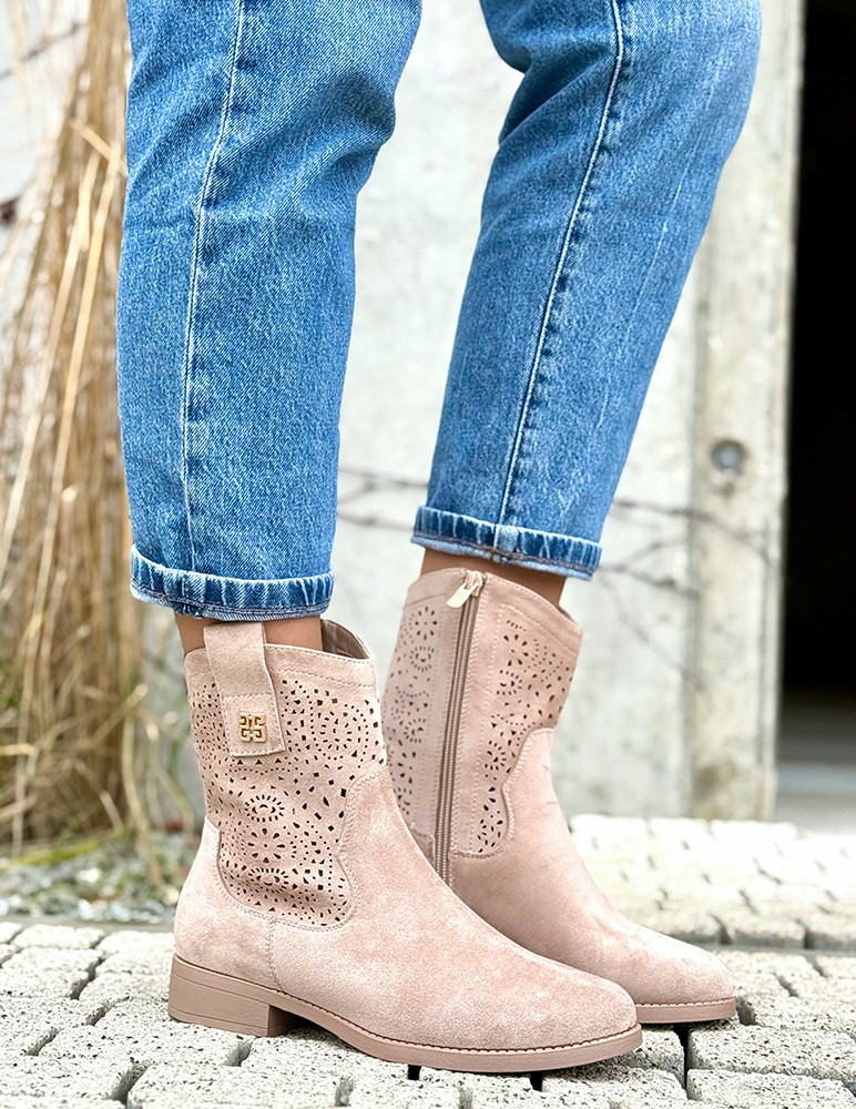 Tieto nízke perforované čižmy majú moderný a praktický dizajn vhodný na prechodné obdobie. Sú vyrobené z jemného materiálu s perforáciou, ktorá zabezpečuje lepšiu priedušnosť a zároveň dodáva obuvi štýlový vzhľad. Nízky strih umožňuje pohodlné obúvanie a voľnosť pohybu. Čižmy majú pevnú podrážku s nízkym podpätkom, vďaka čomu sú ideálne na každodenné nosenie. Perforovaný vzor im dodáva ľahký, ležérno-elegantný charakter a ľahko sa kombinujú s nohavicami, džínsami aj šatami. Skvelá voľba na jarné dni.