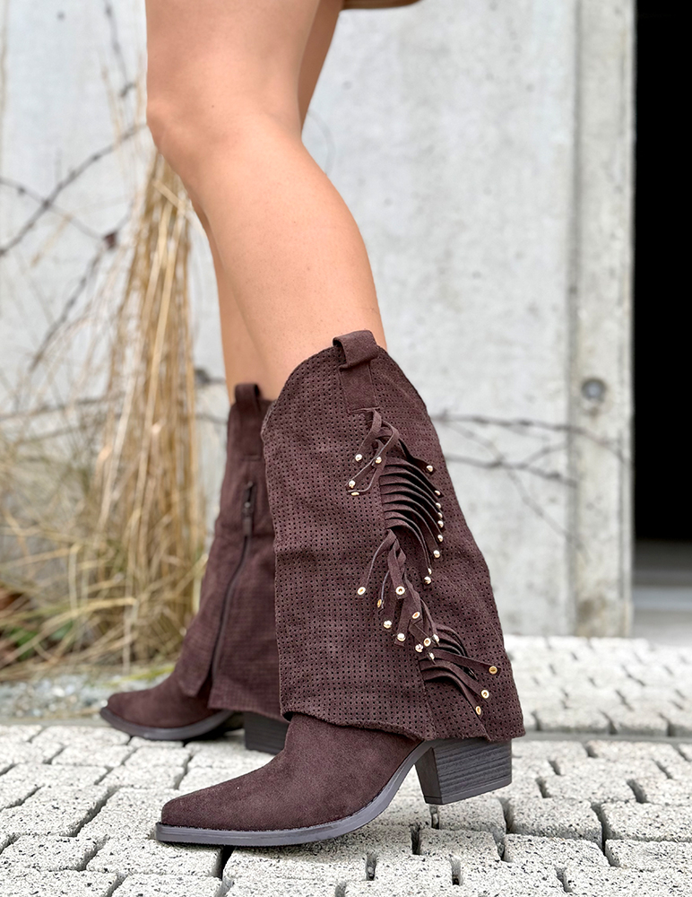 Tieto perforované čižmy so strapcami majú štýlový a originálny vzhľad, ktorý oživí každý outfit. Sú vyrobené z jemného materiálu s dekoratívnou perforáciou, vďaka ktorej sú priedušné a vhodné na prechodné obdobie. Strapce na boku dodávajú obuvi hravý, boho nádych a vytvárajú zaujímavý módny detail. Čižmy majú nížší strih a stabilnú podrážku, ktorá zabezpečuje pohodlie pri celodennom nosení. Ľahko sa kombinujú s džínsami, sukňami aj šatami a sú ideálnou voľbou na jar pre ženy, ktoré chcú spojiť komfort so štýlom.