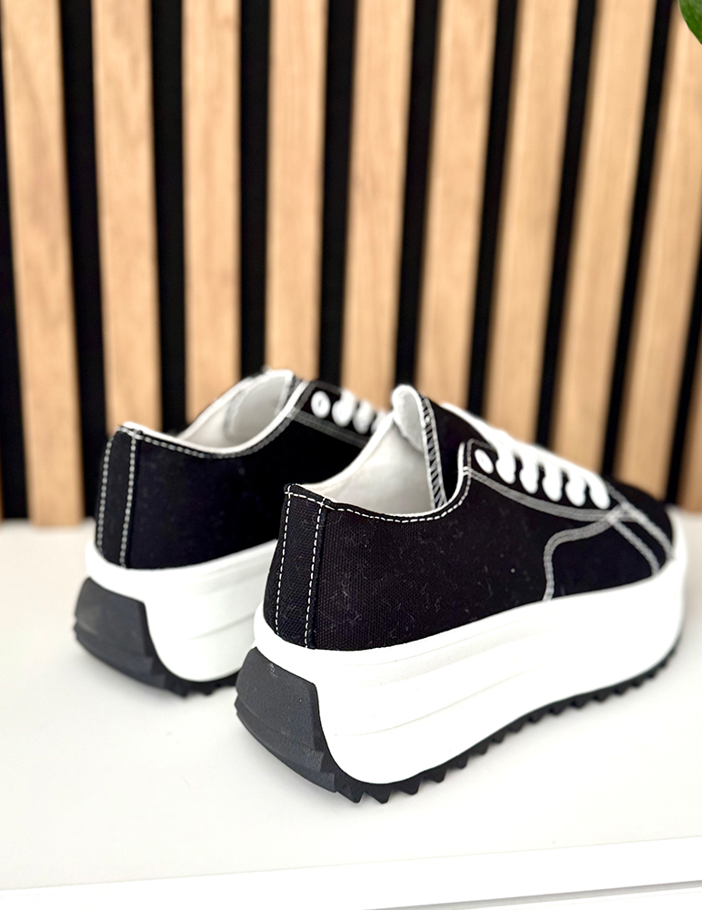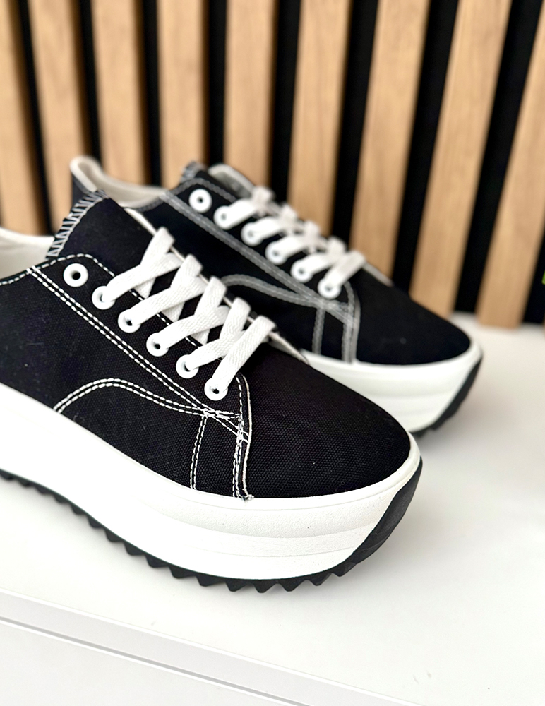 Tieto tenisky na širšej platforme majú moderný, výrazný dizajn, ktorý okamžite upúta pozornosť. Sú vyrobené z kvalitného materiálu, ktorý zabezpečuje pohodlie a dobré prispôsobenie chodidlu. Športový strih je doplnený o širšiu platformu, ktorá dodáva teniskám trendový vzhľad a zároveň poskytuje stabilitu pri chôdzi. Platformová podrážka opticky predlžuje nohy a zaručuje komfort aj pri dlhšom nosení. Tenisky sa skvele hodia k ležérnym aj mestským outfitom – k džínsom, legínam či šatám v športovo-elegantnom štýle.