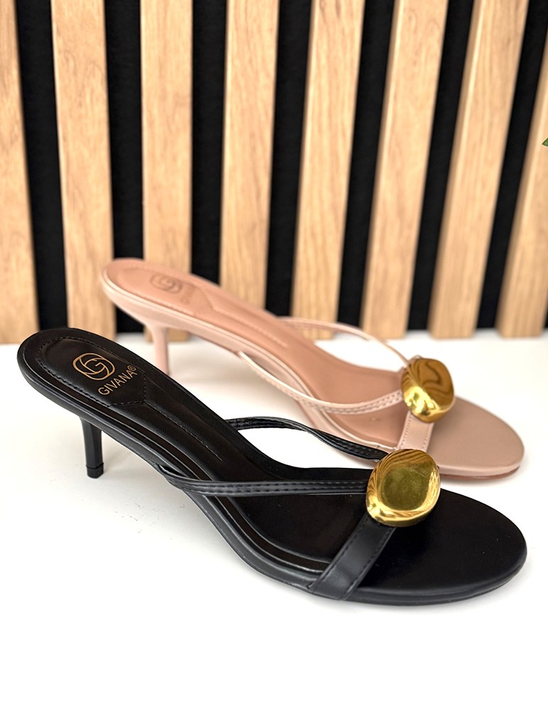 Tieto dámske khaki šľapky Adrienne na podpätku pôsobia elegantne a žensky. Predná časť je doplnená o dekoratívnu zlatú aplikáciu, ktorá dodáva obuvi luxusný akcent. Šľapky majú otvorenú špičku a tenký podpätok strednej výšky, ktorý pekne zvýrazňuje siluetu nohy a zároveň poskytuje stabilitu pri chôdzi.