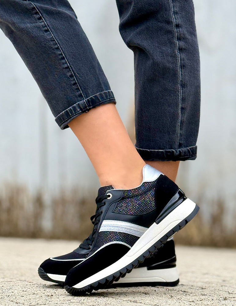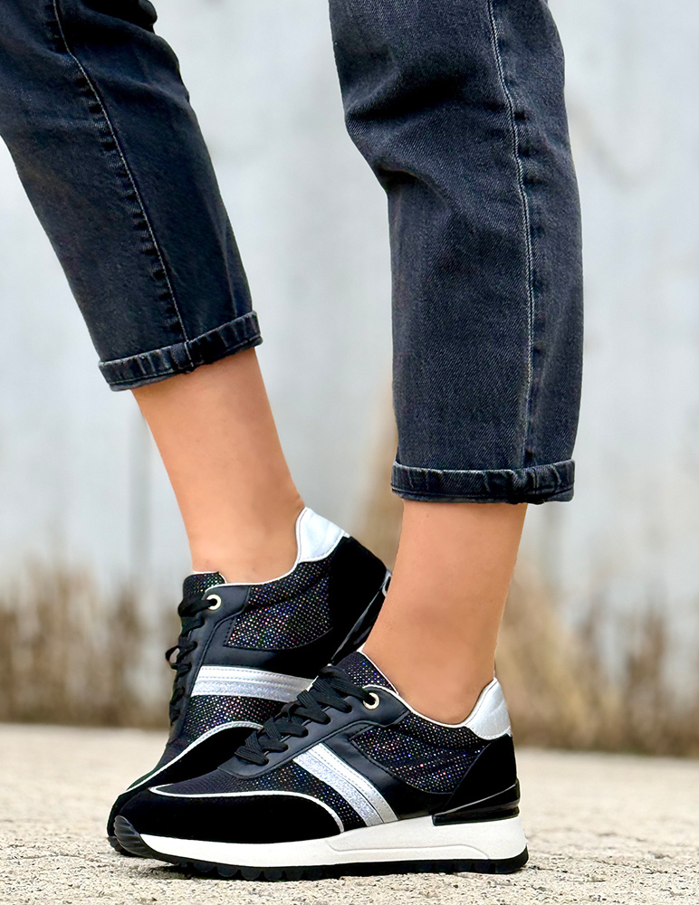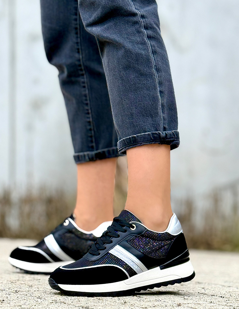 Tieto tenisky majú športový charakter s moderným a výrazným vzhľadom v čiernej farbe. Vyznačujú sa výraznejšou podrážkou , ktorá zabezpečuje dobrú trakciu a zároveň podčiarkuje ich dynamický dizajn. Zvršok je mäkký, pohodlný a odolný, vďaka čomu sa dobre prispôsobí chodidlu. Celkovo ide o komfortné športovo-mestské tenisky, vhodné na každodenné nosenie aj nenáročné aktivity.