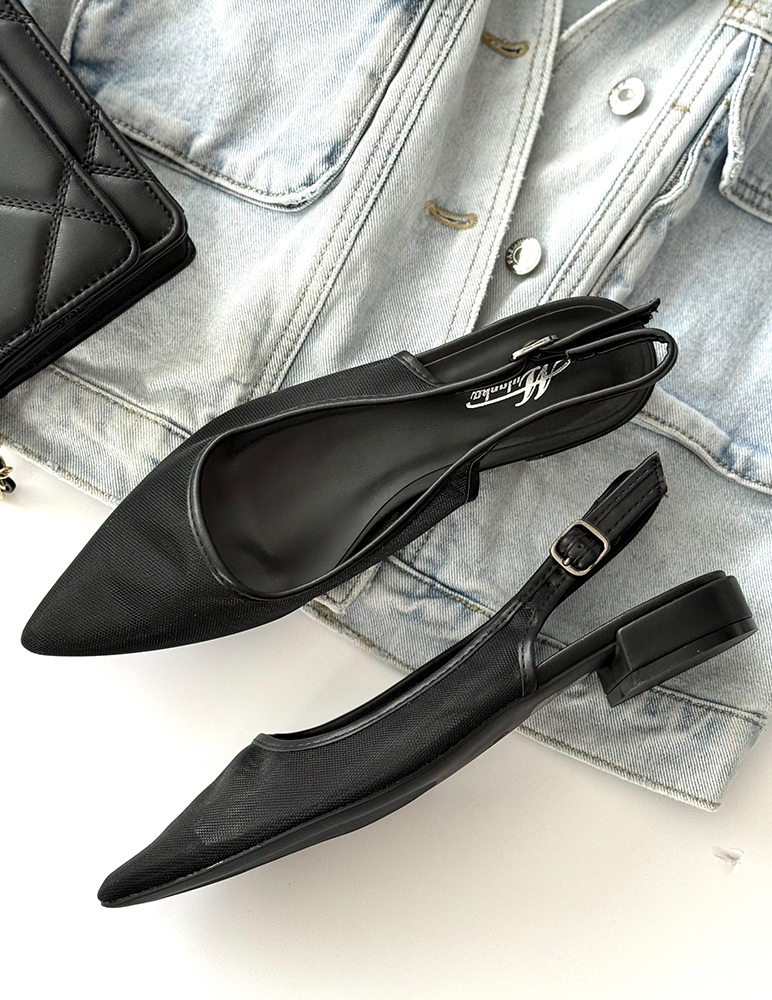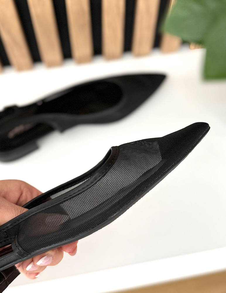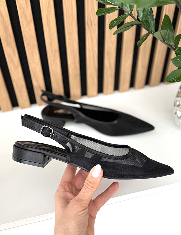 Čierne sandále Isolde na rovnej podrážke s menším podpätkom a s remienkom vzadu majú minimalistický dizajn. Sandále sú priesvitné po celom obvode nohy, okrem špicatej špičky, ktorá dodáva obuvi ženský a sofistikovaný vzhľad. Podrážka s menším podpätkom zabezpečuje pohodlie pri celodennom nosení. Sandále sú doplnené o zadný remienok, ktorý pevne drží nohu a umožňuje jednoduché obúvanie. Vďaka svojmu čistému štýlu sa ľahko kombinujú s letnými šatami, sukňami aj nohavicami.