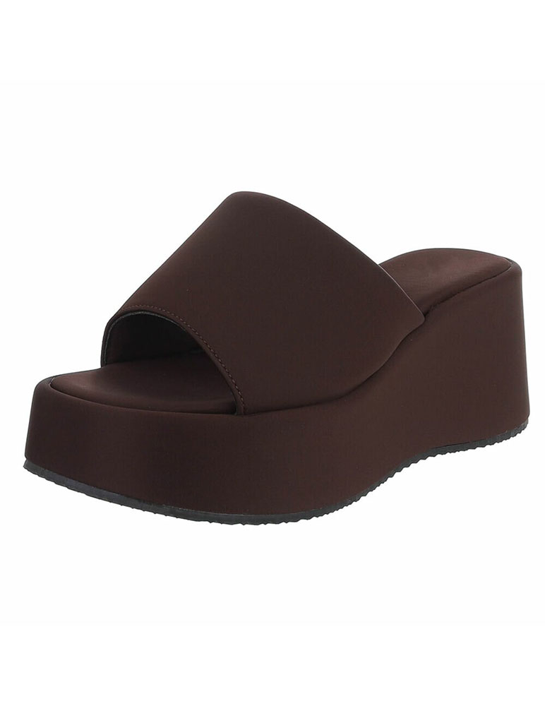 Dámske platformové šľapky Azalea v minimalistickom štýle. Ich dizajn je jednoduchý a moderný. Majú klasický vzhľad s jedným širokým pásom cez priehlavok. Sú vyrobené z hladkej textílie. Podrážka je hrubá platformová, ktorá dodáva výšku a zároveň pohodlie pri chôdzi. Majú otvorenú špičku a mäkkú stielku pre pohodlné nosenie. Ich štýl je minimalistický, letný a elegantný.