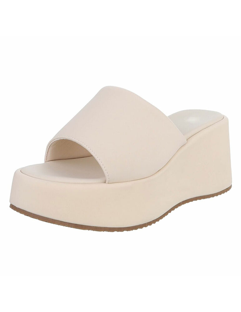 Dámske platformové šľapky Azalea v minimalistickom štýle. Ich dizajn je jednoduchý a moderný. Majú klasický vzhľad s jedným širokým pásom cez priehlavok. Sú vyrobené z hladkej textílie. Podrážka je hrubá platformová, ktorá dodáva výšku a zároveň pohodlie pri chôdzi. Majú otvorenú špičku a mäkkú stielku pre pohodlné nosenie. Ich štýl je minimalistický, letný a elegantný.