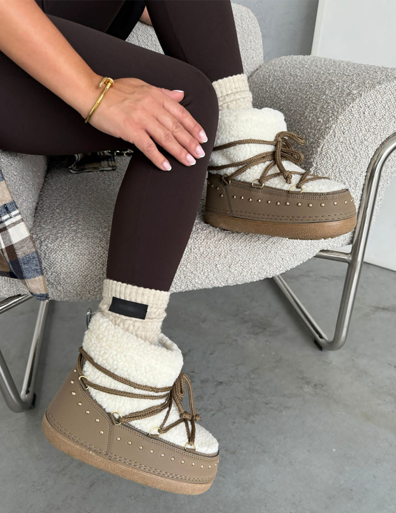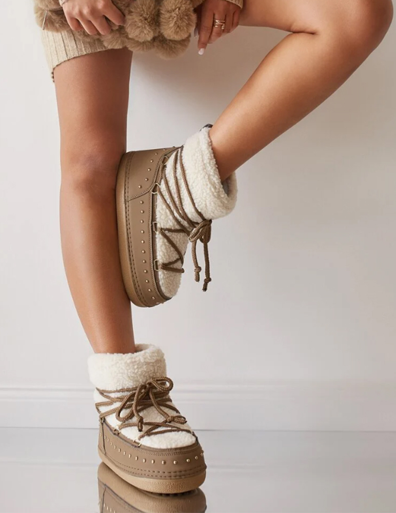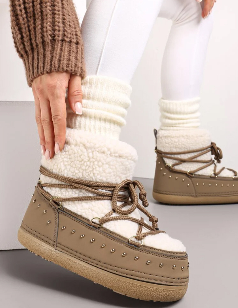 Svetlohnedé snehule Mavie sú štýlové snehule, ktoré určite nikto neprehliadne a zároveň skvelo oživia váš zimný outfit. Topánky majú široký strih a sťahujú sa šnúrkou.